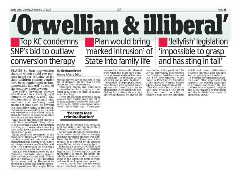 The Scotsman, Christian group’s lawyer warns conversion therapy laws may breach Holyrood’s legislative competence