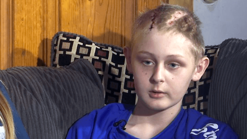Trenton McKinley, 13, suffered seven skull fractures when he was involved in a dune buggy accident with a friend in March.
