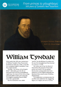 • New leaflet from The Christian Institute – ‘From princes to ploughboys: 500 years of Tyndale’s New Testament’ – explores the life and work of William Tyndale